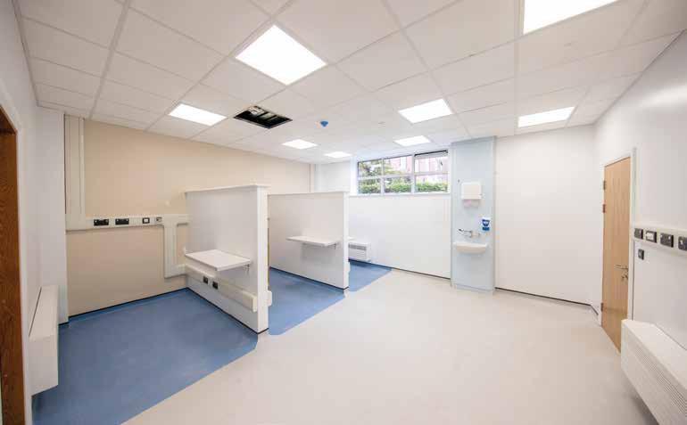 THE BRIEF The brief comprised the improvement of the entrance area to these two departments, provision of a new reception and waiting area for both departments, new triage, secure drugs room, treatment rooms, ENT treatment rooms and telehealth room.