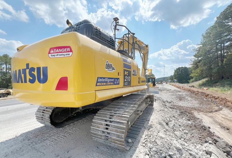 The project calls for approximately 90,000 cu. yds. of unclassified excavation and approximately 140,000 cu. yds. of aggregate surfacing. While weather has not been a major issue for crews, they have encountered minor utility conflicts, and additional lighting work has been added to the schedule.