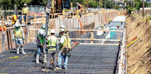 The Graniterock project management team includes project engineers Josh Cutler and Gio Giannotta and senior project managers Dave Olivas and Jim Mitchell. Because the box culvert will be in an already built-out city, workers will construct it underground instead of in the traditional manner of cut and cover precast box culverts.