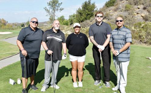 The foursome from Vitco Foods at the Closest to the Pin challenge (L-R) are Sean Beltran, Steve Randazzo, Isaiah Beltran and Tony Dominguez, with pro golfer Kailie Vonsaga in the center.