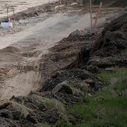 • Small crane (anticipated to be 4-65 ton, and either rough-terrain or tracked hydraulic) will be used for setting some of the soldier beams.