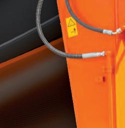 The machine’s design emphasizes accessibility. hydraulic lines, electrical components and controls are intentionally exposed behind two rear access doors to simplify maintenance and troubleshooting. Operators adjust broom angle, pressure and elevator settings without leaving the machine.