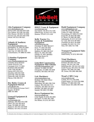 For information about advertising in or submitting articles for Construction Equipment Guide’s Crane Product & Service Guide, call 800/523-2200 or e-mail: cmongeau@cegltd.com