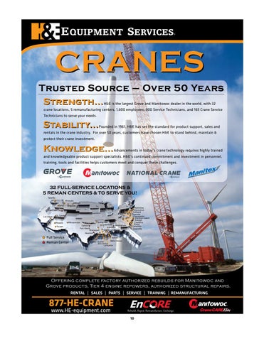 CRANES Trusted Source – Over 50 Years Strength... H&E is the largest Grove and Manitowoc dealer in the world, with 32 crane locations, 5 remanufacturing centers, 1,600 employees, 900 Service Technicians, and 165 Crane Service Technicians to serve your needs.