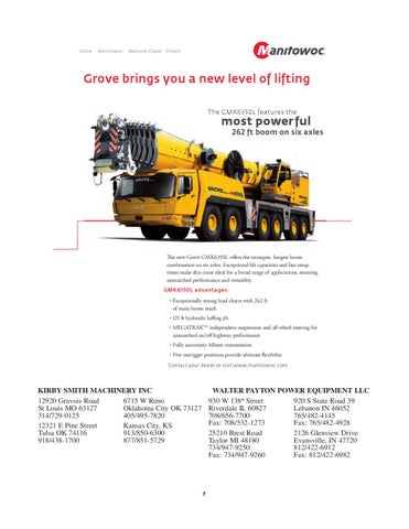 The new Grove GMKď˜žď˜ťď˜˝ď˜šL oers the strongest, longest boom combination on six axles. Exceptional lift capacities and fast setup times make this crane ideal for a broad range of applications, ensuring unmatched performance and versatility.