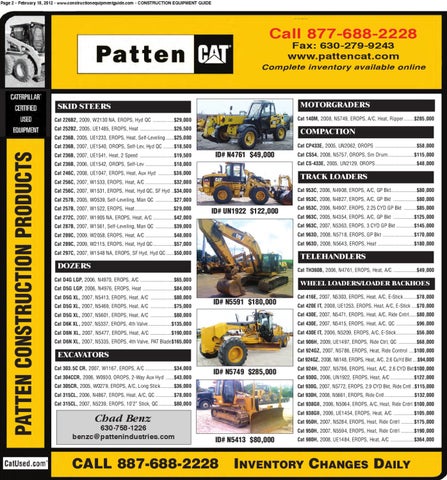 Call 877-688-2228 Fax: 630-279-9243 www.pattencat.com Complete inventory available online
