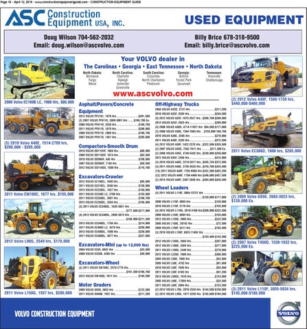 USED EQUIPMENT Doug Wilson 704-562-2032 Email: doug.wilson@ascvolvo.com