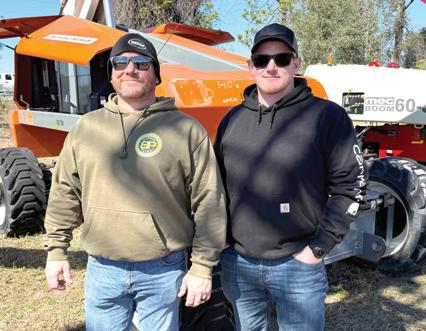 Yeager (L) of Border Patrol Construction, Hopedale, Ohio, and Colt Liggett of C3 Excavation, Sharonville, Ohio, talk about a 60-ft. JLG lift Yeager had just purchased at the