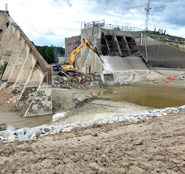 Crews with Spence Brothers are currently at work restoring spillways on the Edenville Dam, the largest of the four that also includes the Sanford, Secord and Smallwood Dams. Located on the Tittabawassee and Tobacco Rivers, the Edenville Dam provides water control for the Wixom Lake on which about 2,785 homeowners enjoy waterfront property.