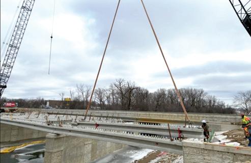 A total of 19 beams were set over the past few weeks to cover the three spans on westbound I-90 over the Cedar River in Austin.