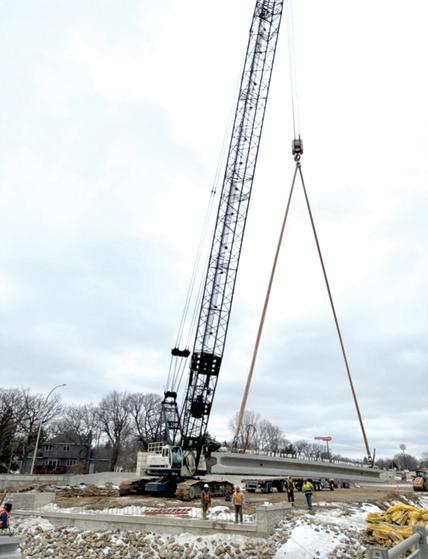 Crews moved the beams for the east and west ends of the bridge into place on Feb. 10.
