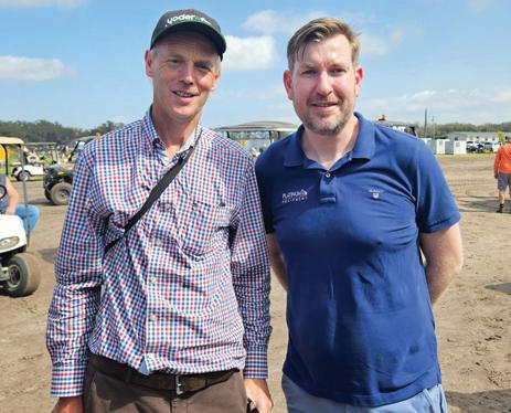Derek Keys (L), founder of Euro Auctions, and Robert Meade of Platinum Equipment, based in the U.K., meet up at the Yoder & Frey auction in Kissimmee, Fla.