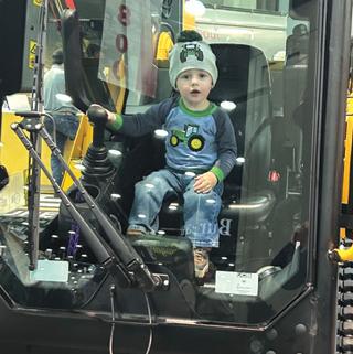 Mark Haynes, owner of Haynes Construction in Huron County, Ohio, enjoys the auction with his grandson, Kai.