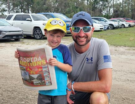 Zach Haan and his son, future contractor, Drew Haan, both of Busschers Excavating, Holland, Mich., check out CEG’s Florida Auctions publication while at the Yoder & Frey sale in Kissimmee.