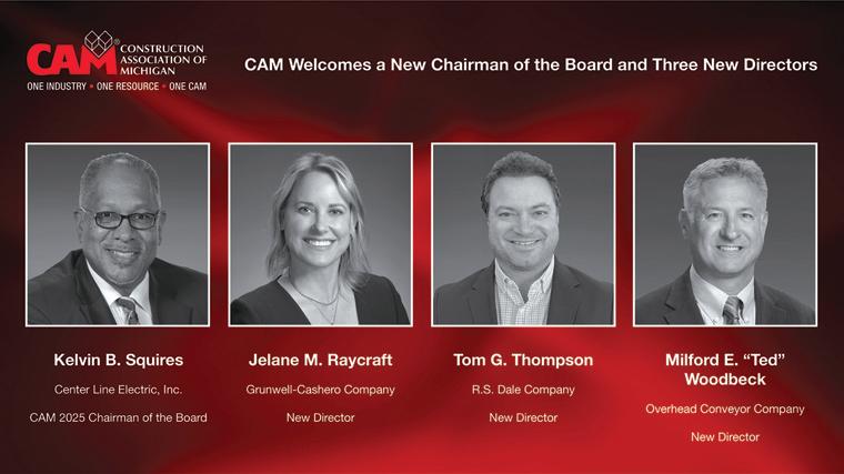 At the 139th annual meeting of the Construction Association of Michigan (CAM) on Feb. 12, 2025, at the Suburban Collection Showplace in Novi, Mich., the association’s new officers and the 2025 board of directors were installed.