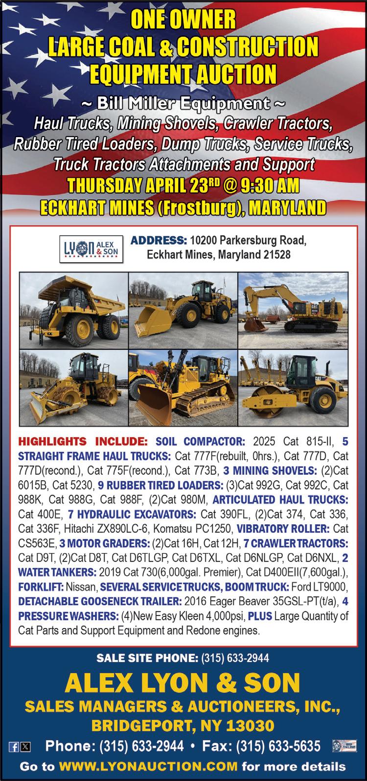 April 20th, 2026 – Begins Ending 12:00 – Noon EST INDUSTRY SPECIFIC AUCTION – ONLINE ONLY