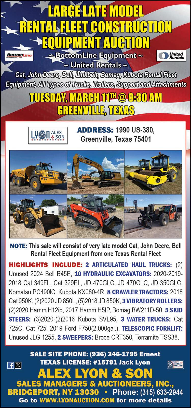 D37PX-23 $99,500 STK# KM2023250, 2204 HRS, Palmyra, MO 2017 KOMATSU 931.2 $249,000 STK#VT2023001, 10,292 HRS, Escanaba, MI