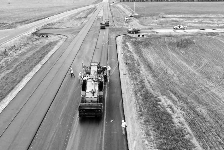 Kansas prairie where no road had been before. No traffic to contend with. No hills to flatten. No web of utilities and fiber optics to relocate. Hold the combines a minute. As all experi-