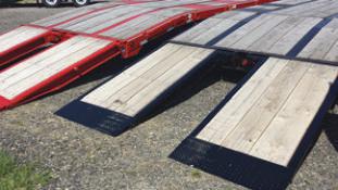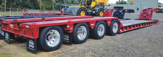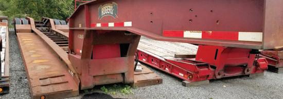 Rogers 40 Ton No-Foot, 24' deck, adjustable width bifold ramps, Bucket cut-out, 275's, Aluminum outers, Night Lights, Strobes, Rogers Red IN STOCK!