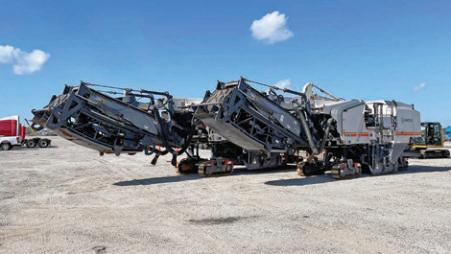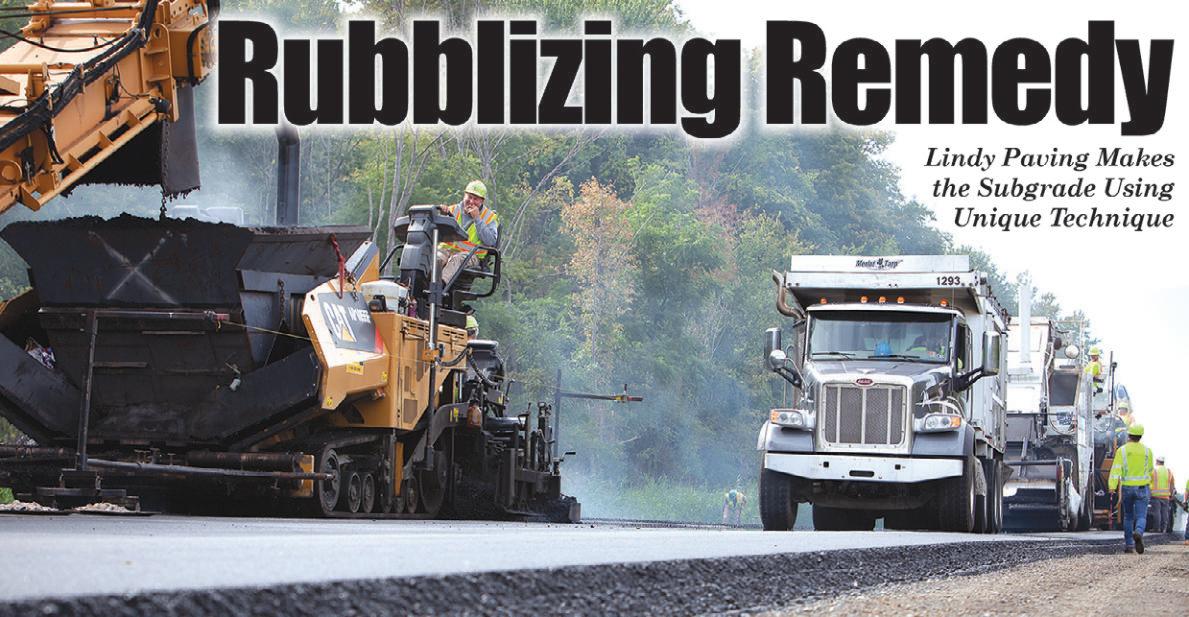 (All photos courtesy of Denmarsh Photography and Lindy Paving.) The completed eastbound lanes of the project tested with remarkable smoothness numbers. As is often the case, this job required the road-building team to keep a lot of balls in the air. Workers used the multi-hammer rubblizing equipment from Antigo Construction to break up the old concrete road into bite-sized pieces. LINDY from page 30 Lindy Paving predicted that paving the westbound lanes next year will require approximately 200,000 tons of asphalt.