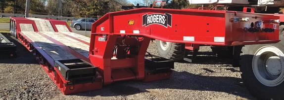 Rogers 55 Ton, No-Foot, 25' deck, deep well pocket, depressed cross members, adjustable width bi-fold ramps. reinforced wheel covers, reinforced front slope & side rails. Safety Lighting Package, Strobes, 275's on Alum. outers, Air Lift 3rd. All Wheel ABS. Rogers Red and Black........ IN