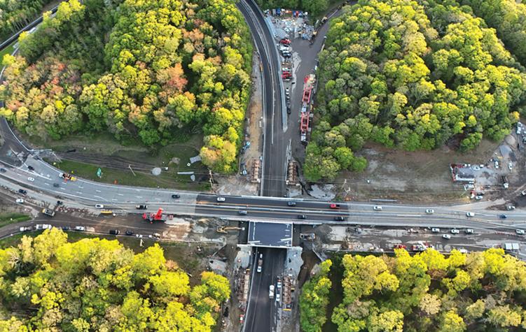 “This allowed the contractor the ability to build both bridges over Route 138 next to the existing bridges,” said Heidi Gudmundson, RIDOT spokeswoman. “Both bridges were constructed on support towers and then later transferred to the SPMT’s and rolled into place. This method allowed us to demolish and move two bridges into place over two 57-hour extended weekend closures, thus significantly limiting the traffic impacts as compared to conventional construction.”