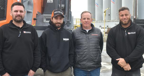 The Benevento Company and Equipment East teams work closely together to ensure that the DEVELON equipment in their fleet is meeting all expectations. (L-R) are Tim Elliot, Equipment East; Johnny Benevento, Benevento Companies; Tim Allard, Benevento Companies; and Peter “PJ” Varone Jr., Equipment East.