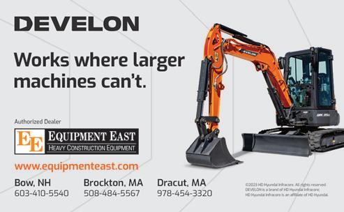Serving Massachusetts and New Hampshire, Equipment East is a fullline construction equipment distributor representing DEVELON, Wacker Neuson, Yanmar and ASV compact track loaders, along with a wide range of attachments, Felling trailers, Atlas Copco and Chicago Pneumatic tools and Vac-All vacuum truck solutions.