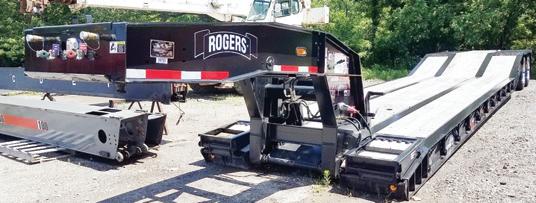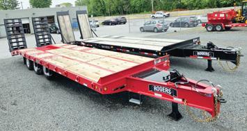 Rogers CR35GR, 35 ton Gentle Riser, No-Foot Neck, gooseneck work lights, 24' clear deck, 16 degree rear riser, chain bins, 275's on aluminum outers, night lights, strobes, adjustable width bi-fold front ramps................. IN STOCK!