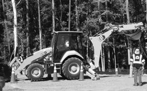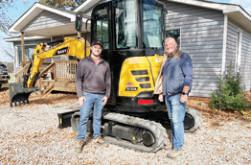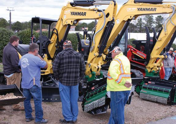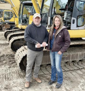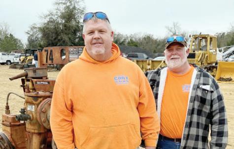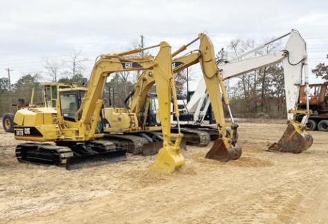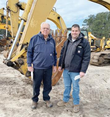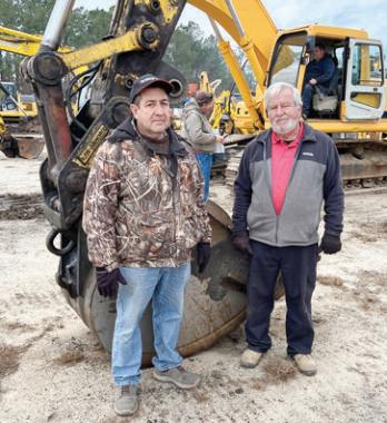 Mickey Meekins (R) gets the auction under way as Jim Cox keeps up with internet bidding. auction featured many medium-sized Cat, Komatsu and John Deere dozers. Ben Pace and Lisa Holcomb, both of Pace Custom Grading in Ridgeway, Va., were interested in one of the Komatsu excavators. The annual auction featured a wide assortment of excavators.