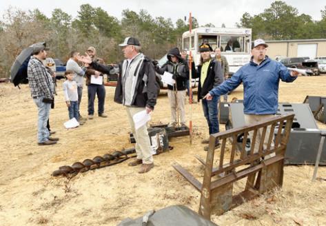 These excavators were all sold to a contractor in South Georgia who bid on them online. This John Deere 862 scraper was sold to a bidder in Miami, Fla. The auction included several LeeBoy paving machines. (L-R) are Dick Mizzell of Heavy Equipment Consulting in Columbia; Robert Armstrong of Armstrong Equipment in Columbia; and Trey Davis of Sold Auction Company. The auction included several compact track loaders and skid steer loaders. Colin Thain of Sold Auction Company helps a bidder who is keeping up with the sale via the internet. David (L) and Brian Cody, both of Darrell Cody & Sons Grading in Richfield, N.C., came to bid on the excavators, loaders and scissor lifts. Ringmen Richard Smith (L) and Marshal Tingle catch the latest bids on the attachments. Auctioneer Jason Walker makes the morning announcements before the auction begins. (L-R) are Lindsay, Stephanie and Rick Thain.
