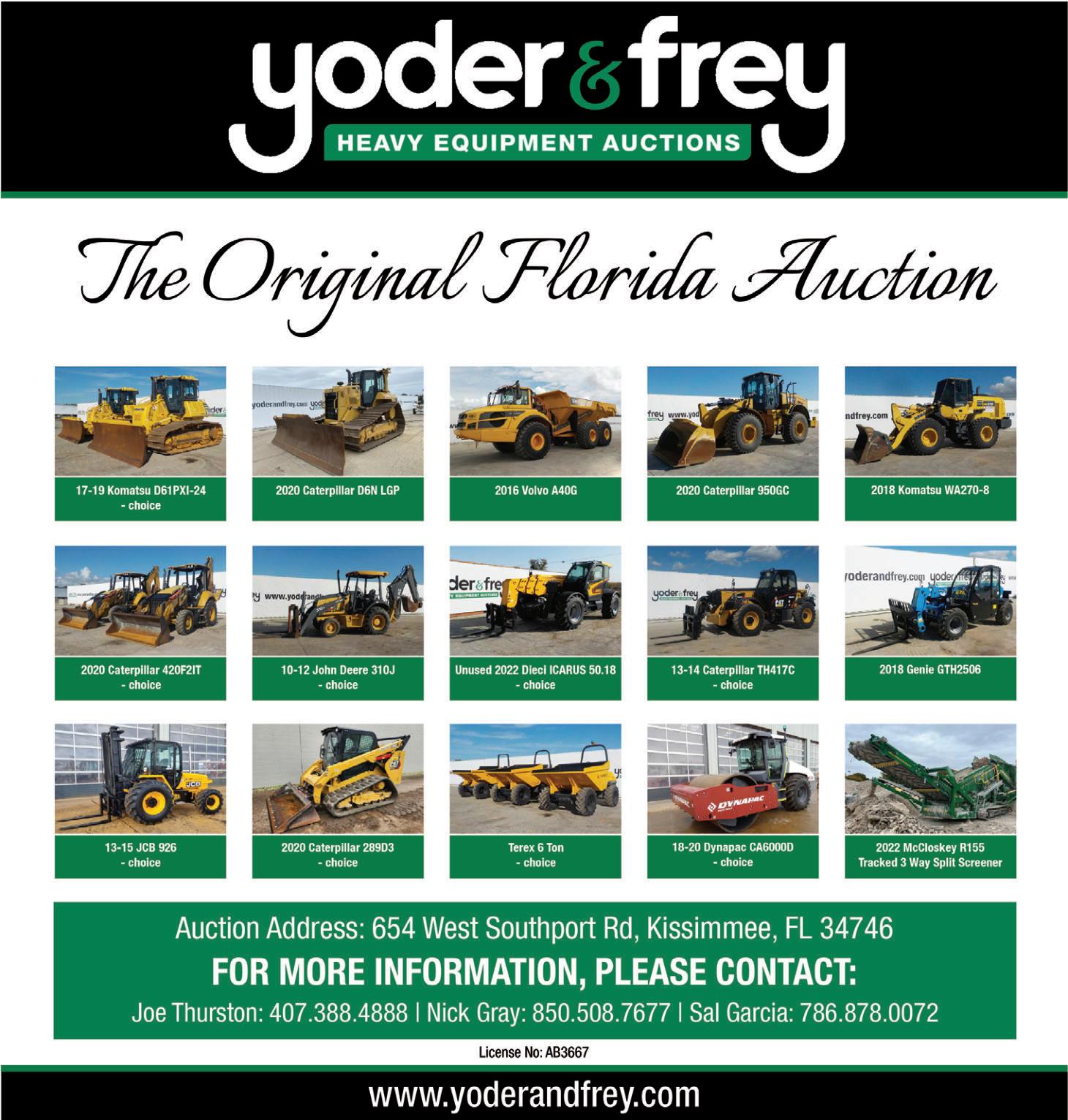 CONSTRUCTION EQUIPMENT GUIDE • www.constructionequipmentguide.com • January 25, 2023 • Page 89 WE TURN YOUR ASSETS TO CASH! Bid in person or online at Proxibid and Equipmentfacts! 319-283-2345 • www.bryanauction.com February 17th, 2023 • Orlando, Florida IEDA Florida Live Heavy Equipment & Transportation Auction Live In Person and Online Reunion Resort 7593 Gathering Drive • Kissimmee, FL 34747