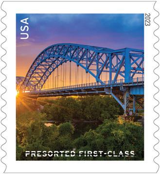 Kessler, who has worked at the USPS for more than 25 years, presented 10 different images from a range of places in the country, each bridge offering something unique. Four were finalized. Presorted First-Class Mail stamps are used for bulk business mailers
