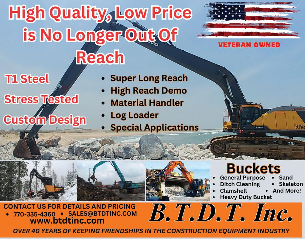 Page 4 • May 15, 2024 • www.constructionequipmentguide.com • CONSTRUCTION EQUIPMENT GUIDE ® C irculated Throughout • Alabama • Arkansas • Florida • Georgia • Louisiana • Mississippi • North Carolina • South Carolina • Tennessee • Virginia • Puerto Rico • Virgin Islands Construction Equipment Guide Southeast Edition (ISSN 1058-6474) is published biweekly by Construction Equipment Guide Ltd. Advertising and Editorial Offices are located at 470 Maryland Dr., Ft. Washington, PA 19034. Toll Free 800/523-2200 or Fax 215/885-2910. Annual Subscription Rate $65.00. Call for Canadian and foreign rates. Periodicals postage paid at Ft. Washington, PA and at additional mailing offices. POSTMASTER: Send address changes to Construction Equipment Guide Southeast Edition, 470 Maryland Dr, Ft. Washington, PA 19034. Contents Copyrighted ©2024, by Construction Equipment Guide, which is a Registered Trademark, registered in the U.S. Patent Office. Registration number 0957323. All rights reserved, nothing may be reprinted or reproduced (including framing) in whole or part without written permission from the publisher. All editorial material, photographs, drawings, letters, and other material will be treated as unconditionally assigned for publication and copyright purposes and are subject to Construction Equipment Guide's unrestricted right to edit and comment editorially. Contributor articles do not necessarily reflect the policy or opinions of this publication. Call or write for advertising rates, publication schedule and media kit. The Construction Equipment Guide is not responsible for clerical or printer's errors, every care is taken to avoid mistakes. Photographs of equipment used in advertisements are not necessarily actual photographs of the specific machine. Similar photographs are used occasionally and every effort is taken to depict the actual equipment advertised. The right is reserved to reject any advertising.