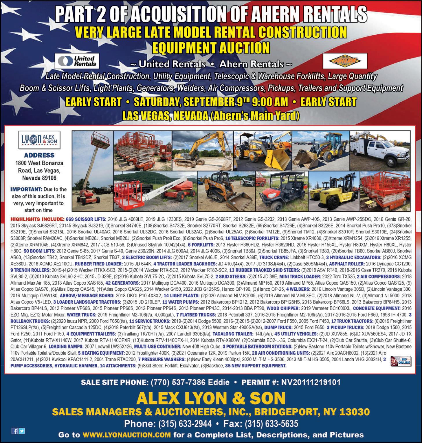Page 90 • August 9, 2023 • www.constructionequipmentguide.com • CONSTRUCTION EQUIPMENT GUIDE 1310 EMS Drive, Mt. Airy, NC 27030. license number NCAL#685 TO REGISTER AND FOR FULL TERMS VISIT WWW.ROGERSAUCTIONGROUP.COM 1-800-442-7906 Location: 730 Oakridge Farm Hwy, Mooresville, NC 28115. Sale is Onsite/Online • WWW.ROGERSAUCTIONGROUP.COM CAT Excavators • CAT Skid Steers • Kubota Skid Steers • Kubota Loader/backhoe • Kubota Excavators Ditchwitch Skid Steers • Husqvarna Trowell Machines • JLG Lifts • Genie Lifts • Light Towers Hillman Rollers • Altec Chippers • Pressure Washers • Fork Attachments *Inventory subject to change without notice AUCTION Ultimate Equipment Rentals August 30th @ 9am.