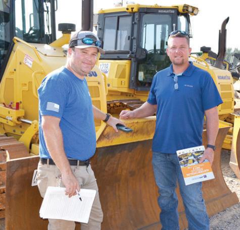 Comparing their notes on some of the many Komatsu dozers of interest are Chase Jordan (L), Hurst Construction, Oxford, Ala., and Jason Amason, independent contractor, based in Lineville, Ala.