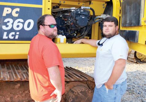 Digging in for a better look at a Komatsu PC 360LCi excavator during their inspection are JJ Seaborn (L) and Jackson Deal of 3D Excavating, Fayette, Ala.