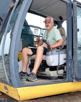 Test operating a John Deere 210G LC excavator is Sidney McClain of S & S Equipment, Houston, Miss.