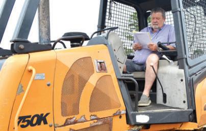 A retired contractor who still buys and sells machines, Freddie Ball of Freddie Ball Construction, Laurel, Miss., reads over some info on a Case 750K dozer.