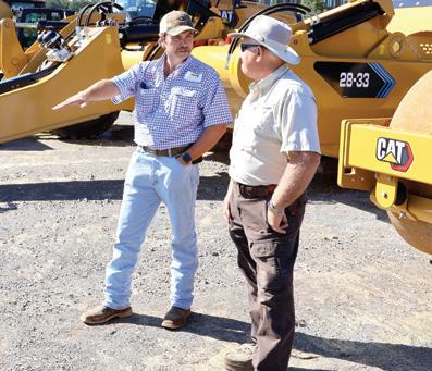 (L-R): Reed Johnson of T.E. Stevens Construction, based in the Birmingham, Ala., area; John Hedrick, Thompson Tractor; and Terry Finley, also of T.E. Stevens, discuss the machines being demoed.