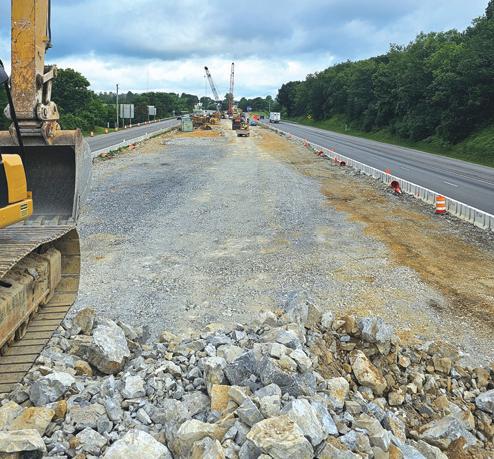 A large percentage of the I-81/I-77 Interchange Safety Improvements project’s excavation quantity (89,000 cu. yds.) is large rock in the median, where the new road alignment is planned to go.
