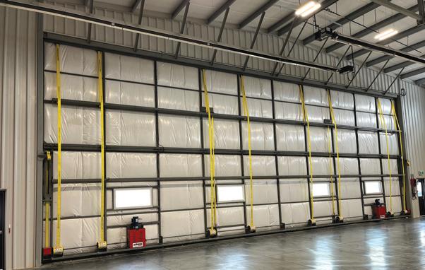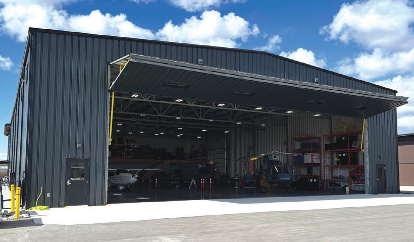 Playing a vital role during this busy time and throughout the year, is Switchback’s 13,000-sq.-ft. hangar and its 60-ft. by 19-ft. Schweiss Doors liftstrap bifold door. The hangar provides storage and maintenance space.
