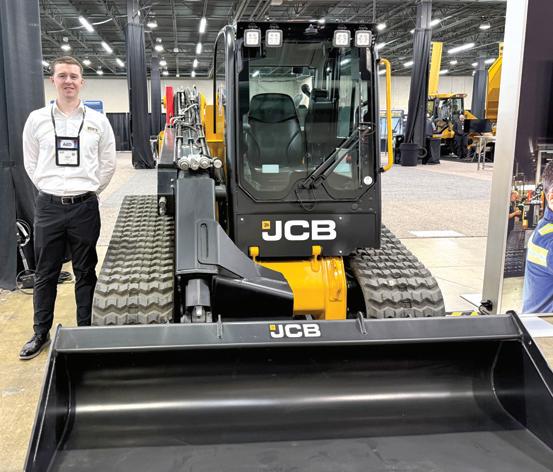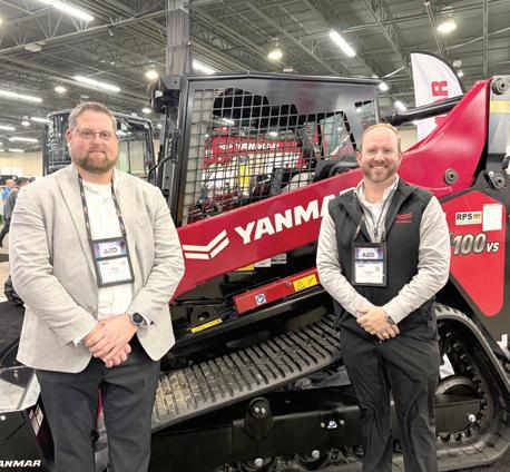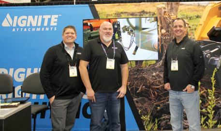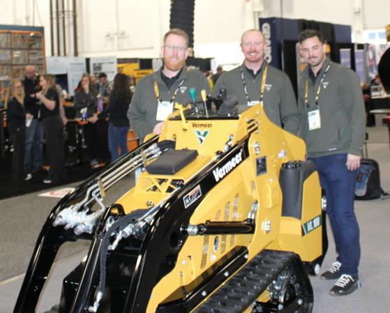 The Vermeer team of Pella, Iowa, (L-R) includes Cole Smith, product specialist; Zach Crabtree, product specialist; and Kegan Strobel, product specialist tree care, rental and landscape. This Vermeer ML100 is a 24.7-hp (18.4 kW) turbocharged diesel-powered, radial-lift mini loader designed for landscaping, tree care and rental markets.