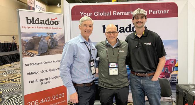 The Purple Wave Auction team (L-R) included Jeff McGough, enterprise account manager construction companies-North America; Marcy Colletti, event marketing manager; and John Beasley, executive sales director.