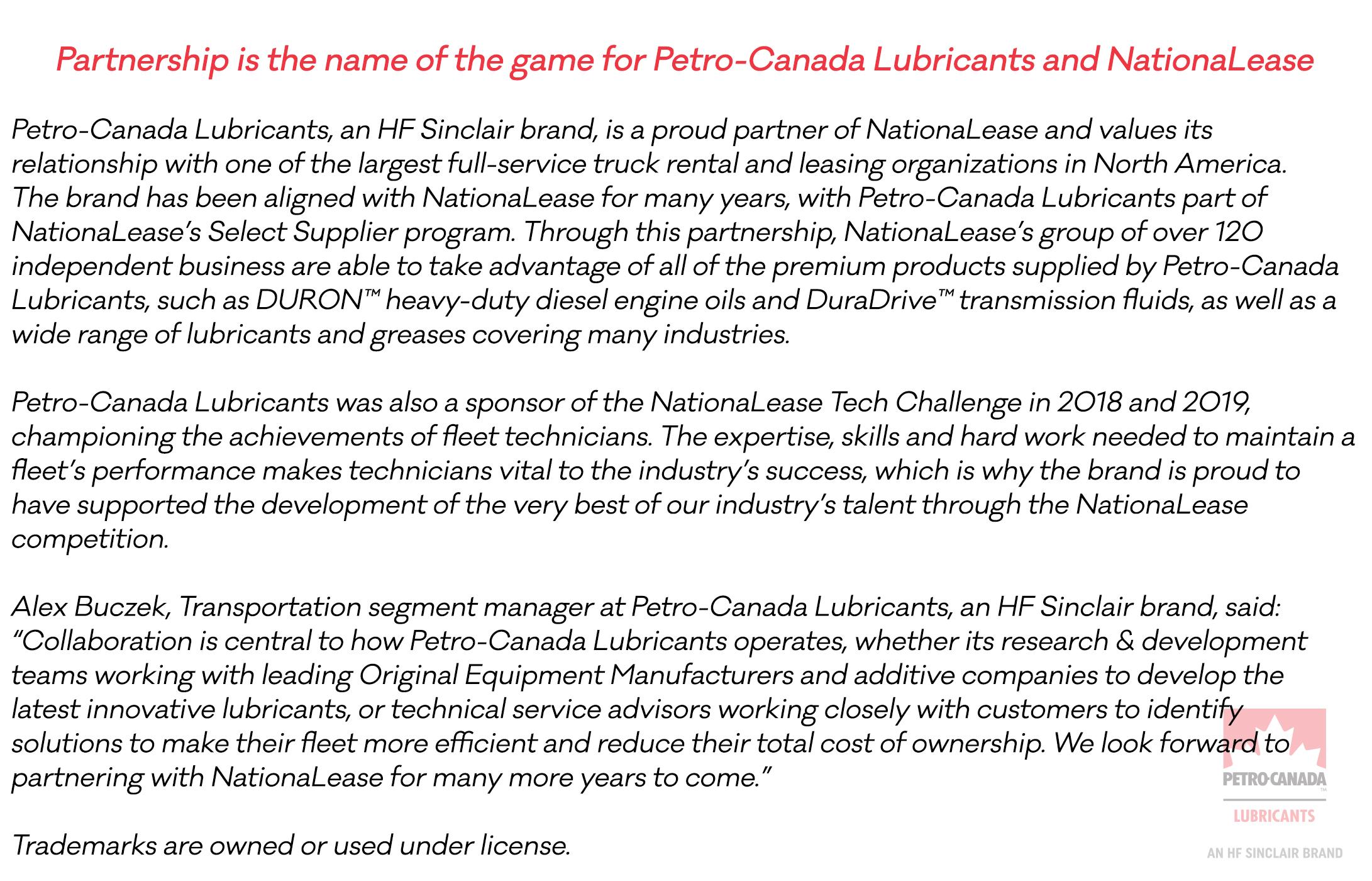 budgets and saving time are key components to the success of their clients. With this in mind, NationaLease utilizes 120 familyowned truck leasing companies with an average of 20 years of experience in over 1000 locations across the U.S. and Canada to provide clients with over 85k trucks, 95k trailers, and support backed by full-service maintenance.