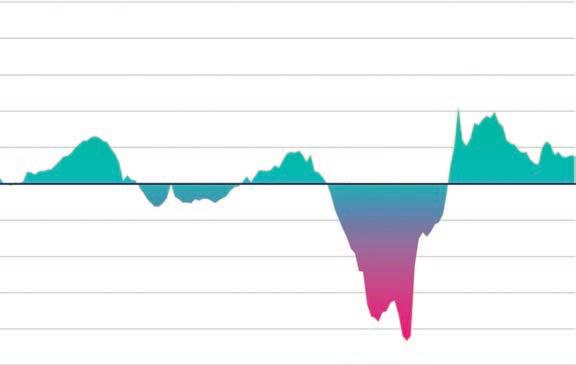 the shortfall will take time to fill, assuming the gap does not expand. Despite weak demand, rising labour costs are now the main cause of inflationary conditions in the sector, as figure 2 illustrates. The area above the X-axis shows labour costs as the main driver of cost inflation, which has been the case for most of the period since 2013, except 2020-2022 when material prices soared.