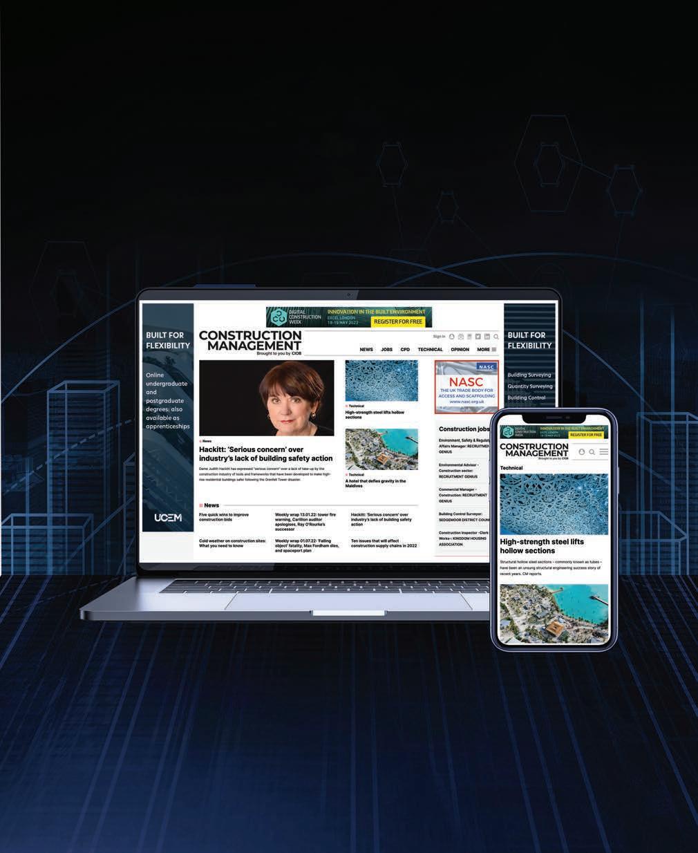 Construction Management is published monthly by Atom Media Partners. The contents of this magazine are copyright. Reproduction in part or in full is forbidden without permission of the editor. The opinions expressed by writers of signed articles (even with pseudonyms) and letters appearing in the magazine are those of their respective authors, and neither CIOB, Atom Media Partners nor Construction Management is responsible for these opinions or statements. The editor will give careful consideration to material submitted – articles, photographs, drawings and so on – but does not undertake responsibility for damage or their safe return. Printed by Precision Colour Printing. All rights in the magazine, including copyright, content and design, are owned by CIOB and/or Atom Media Partners. ISSN 2755 8649