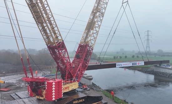 Chasetown Civil Engineering is using a 600t crawler crane to lift the first major span of the new Walton Bridge over the River Trent. The bridge will form part of the new 1.5km bypass construction project to replace the existing Bailey Bridge.