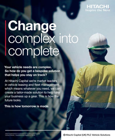 Change complex into complete Your vehicle needs are complex. So how do you get a bespoke solution that helps you stay on track? At Hitachi Capital we’re market leaders in vehicle leasing and fleet management, which means whatever you need, we can create a tailor-made solution to help take your business up a gear. This is how the future looks. This is how tomorrow is made.