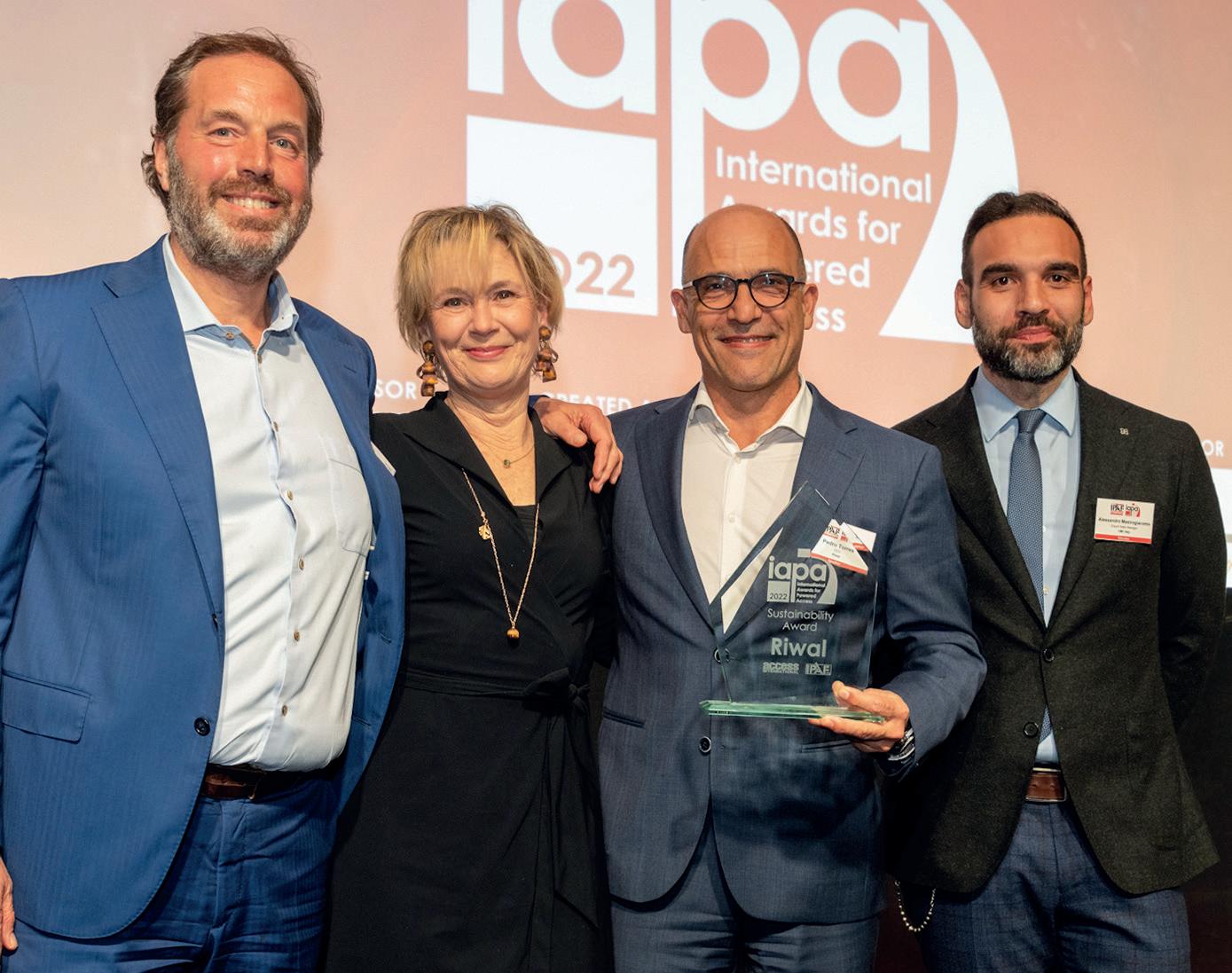Pedro Torres, centre, CEO of Riwal, accepts the 2022 IAPA Sustainability Award